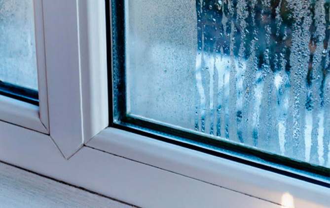 La condensación aparece cuando hay un exceso de vapor de agua en el ambiente y este se transforma en gotas al chocar con superficies frías. Suele deberse a: